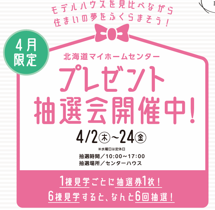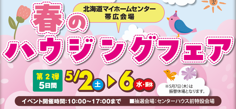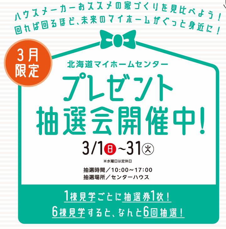 北海道マイホームセンターの住宅展示場は、北海道内に全7会場ございます。現在公開中のモデルハウス情報は、各会場ページよりご覧いただけます。
