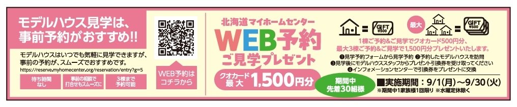 今月は、1棟ご予約&ご見学でクオカード500円分、最大3棟ご予約&ご見学で