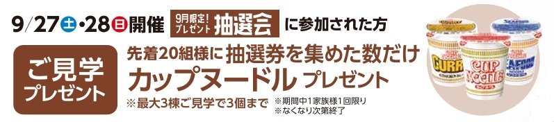 9月27日(土)・28日(日)に抽選会にご参加の方には、『カップヌードル』をプレゼント♪