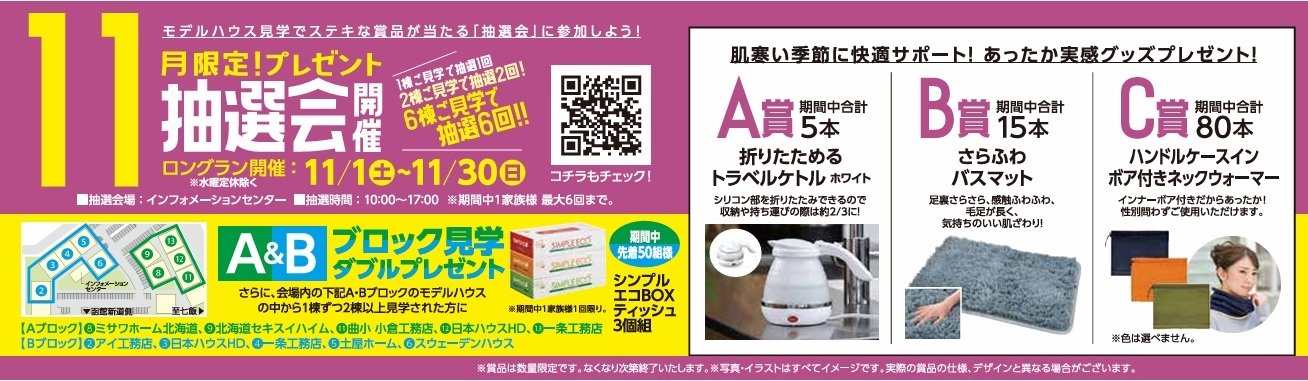 さらに、11月8日(土)・9日(日)開催の抽選会に参加して、3棟以上ご見学された方は